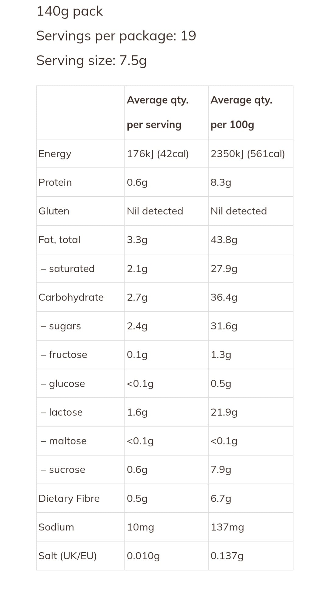 Allergen Information: Contains milk and cocoa butter.ย May contain tree nuts, peanut, soy and sesame.